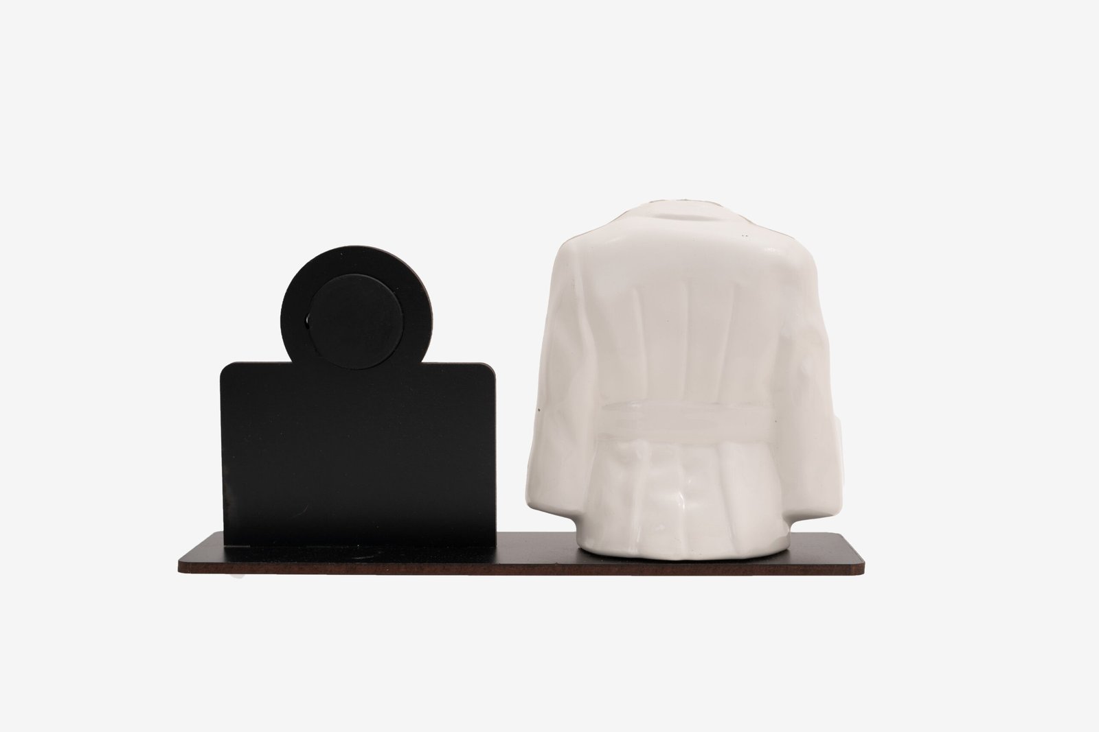 This unique desk organizer serves as both a functional workspace tool and a meaningful symbol of respect for the medical profession. The pen holder compartment within the coat can accommodate multiple pens, making it practical for busy doctors, nurses, and healthcare administrators who need writing instruments readily accessible throughout their day.
