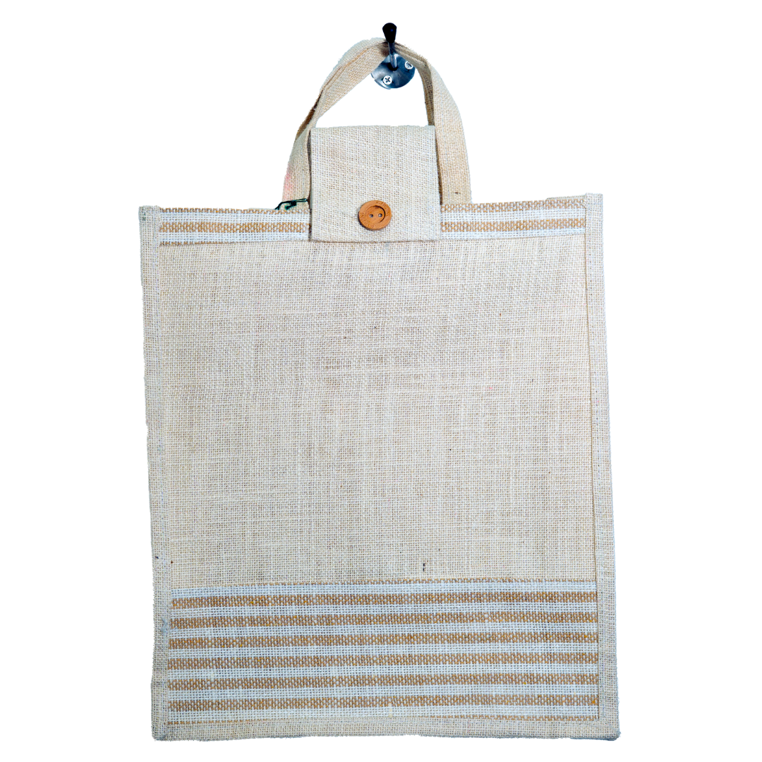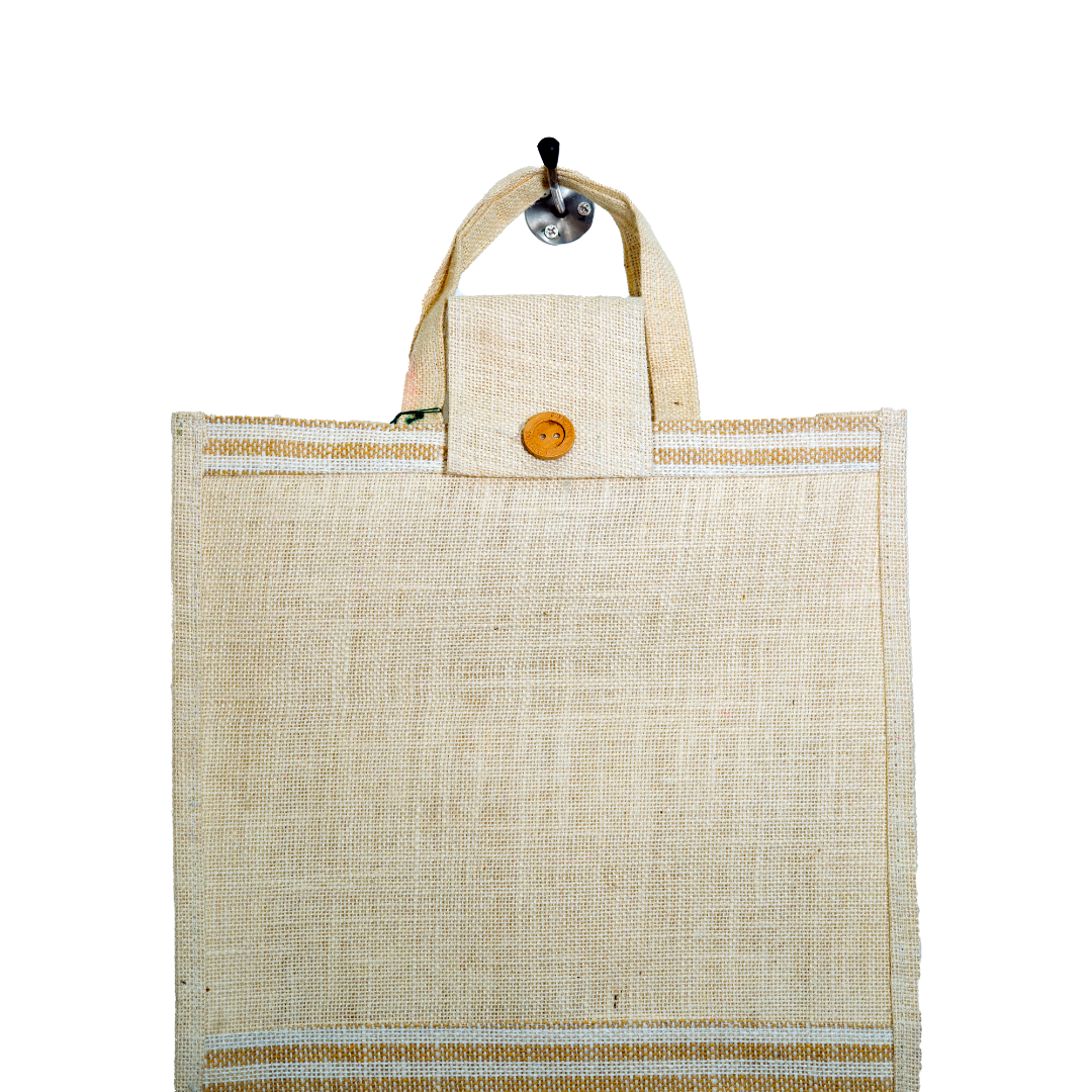 Embrace sustainable living with our durable Jute Bag featuring secure flap closure and protective inner lining. This versatile eco-friendly bag combines natural jute aesthetics with practical design for countless everyday applications.