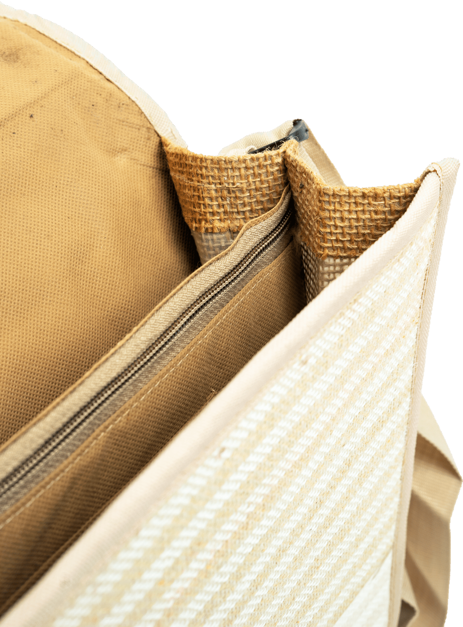 The jute file holder with leather panel features a reliable top zipper closure that keeps your important documents, files, tablets, and laptops secure during transport. The smooth-gliding zipper ensures easy access while protecting contents from dust and damage. This practical jute file holder with leather panel provides peace of mind for professionals on the move.